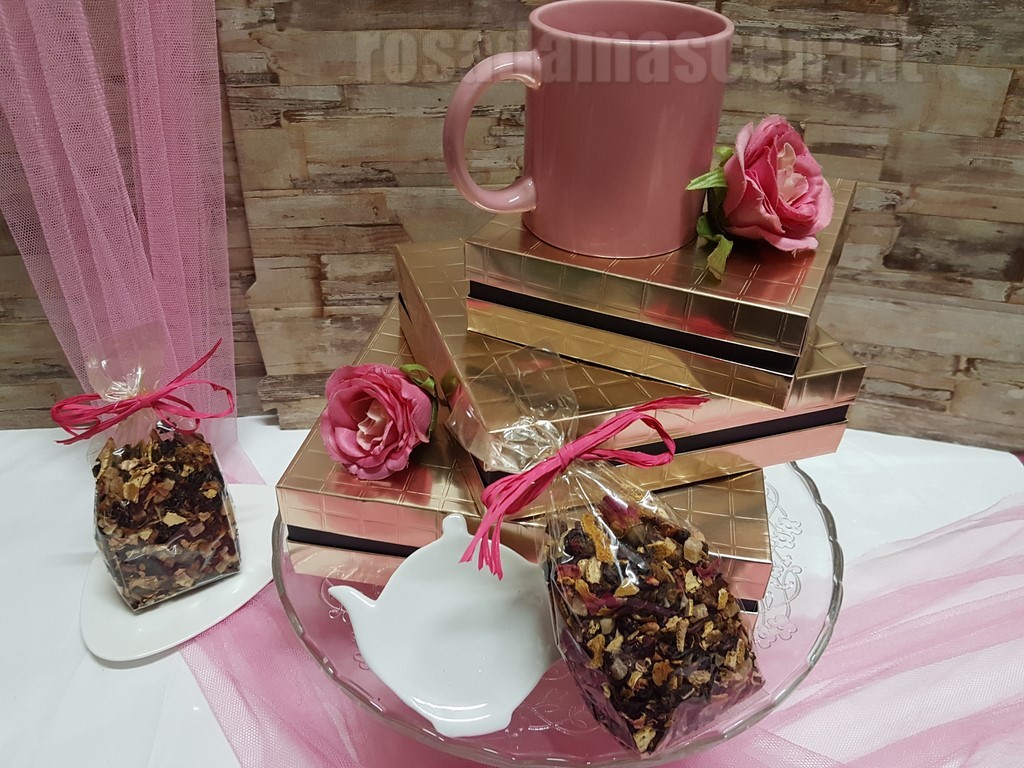 Delicato infuso con petali di Rosa, bacche di Rosa Canina e frutti di bosco con i cubetti di mela e arancia disidratata donano freschezza e rilassamento in ogni momento della giornata grazie al tocco delicato di questa tisana.. Tonico bevuto freddo