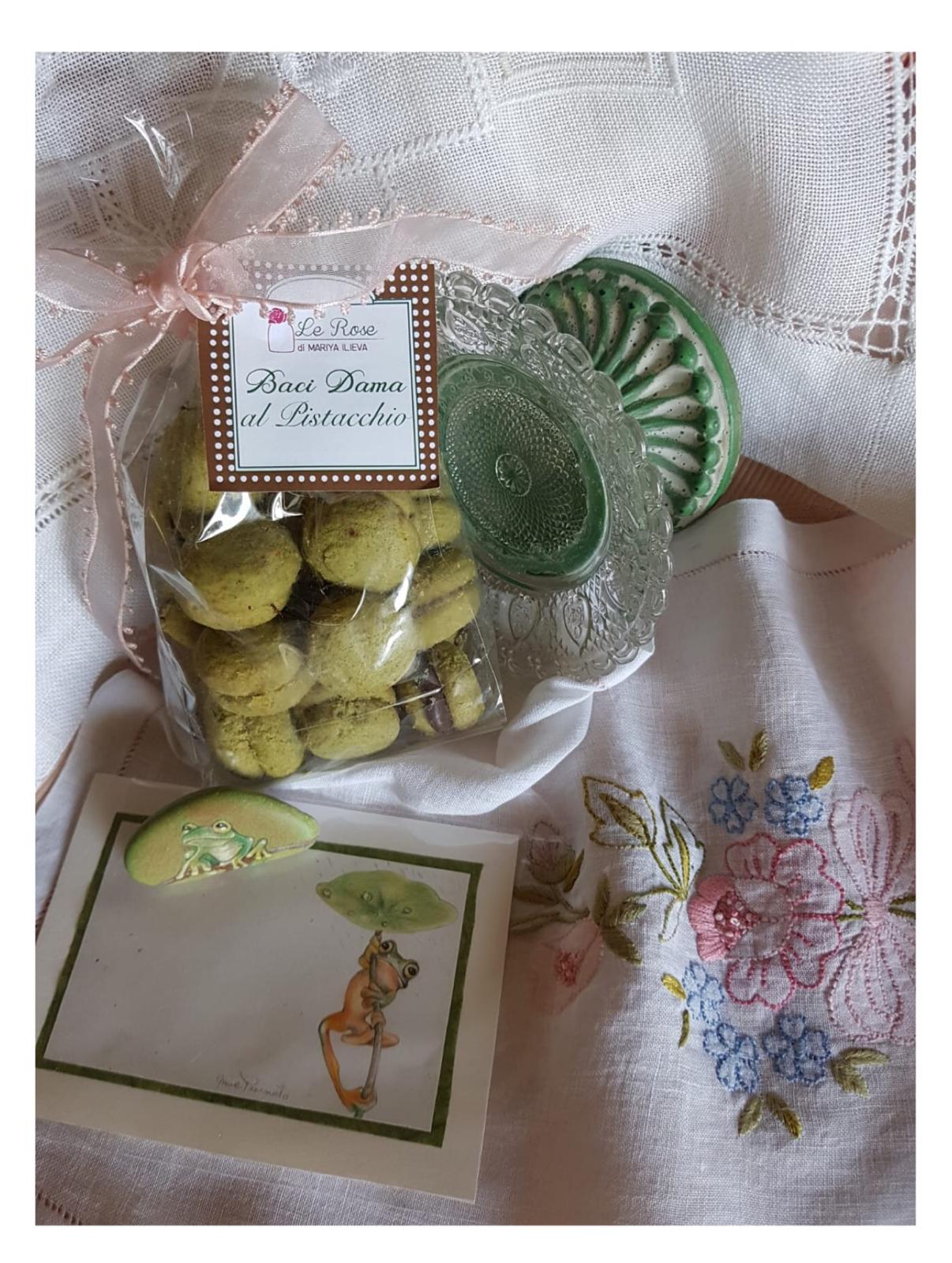 Deliziosi bon bon a forma rotonda creati con autentica ricetta al gusto di Pistacchio e baciati con goloso cioccolato in mezzo. Ottimi per l ora del te' e come un speciale fine pasto e dessert.