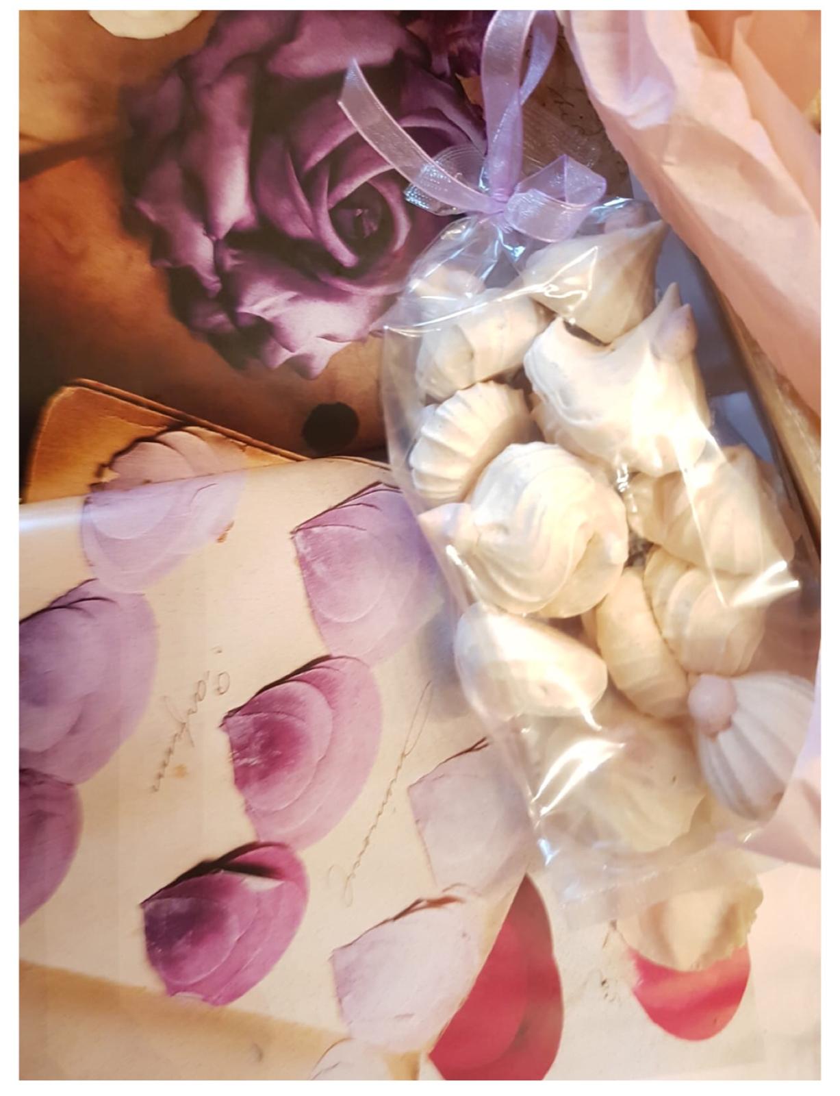 Piccole meringhe a base di albume, zucchero a velo che nel caso specifico vengono arricchite con delizioso aroma di Viola per arrivare ad un gusto unico ed esclusivo.