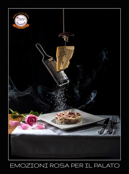 Riso Carnaroli italiano, la qualità più pregiata arrichito con le fragole e petali della Rosa Damascena per un primo piatto raffinato. Delicato solamente con brodo vegetale.