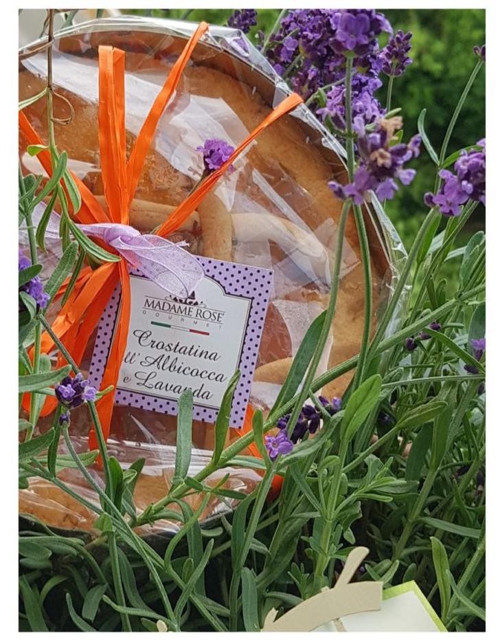 Deliziosa e friabile crostatina creata con autentica ricetta e con gli ingredienti genuini. Farcita con profumata confettura di albicocca e decorata manualmente con lavanda. Ottima merenda per tutti e molto apprezzata dai palati raffinati.